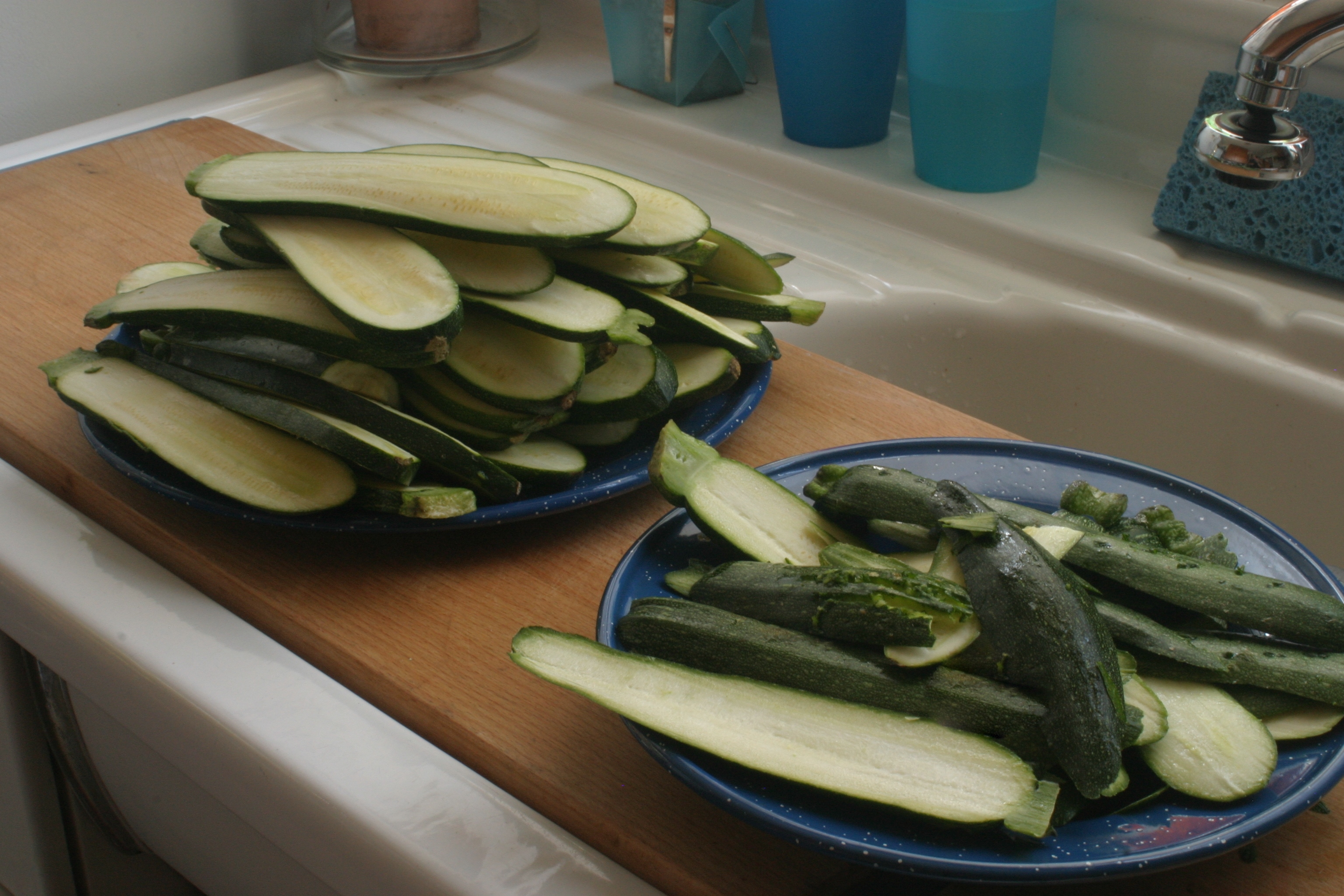 Dried zucchini, you ask? You’ve never heard of dried zucchini? I’d never heard of it, either, but then I read “My Calabria: Rustic Family Cooking from Italy’s Undiscovered South” (by Rosetta Costantino with Janet Fletcher), the reading of which rocked my world. I dried a few pounds of zucchini last year, purely on the recommendation of Ms. Costantino (her other recipes turned out so well that I figured dried zucchini must be good). And dried zucchini is good. Dried zucchini looks rather plain, to put it politely, but simmer it in tomato sauce and it tastes of the end of summer and of all good things. Really, trust me on this – it has that umami flavor thing going on in spades.