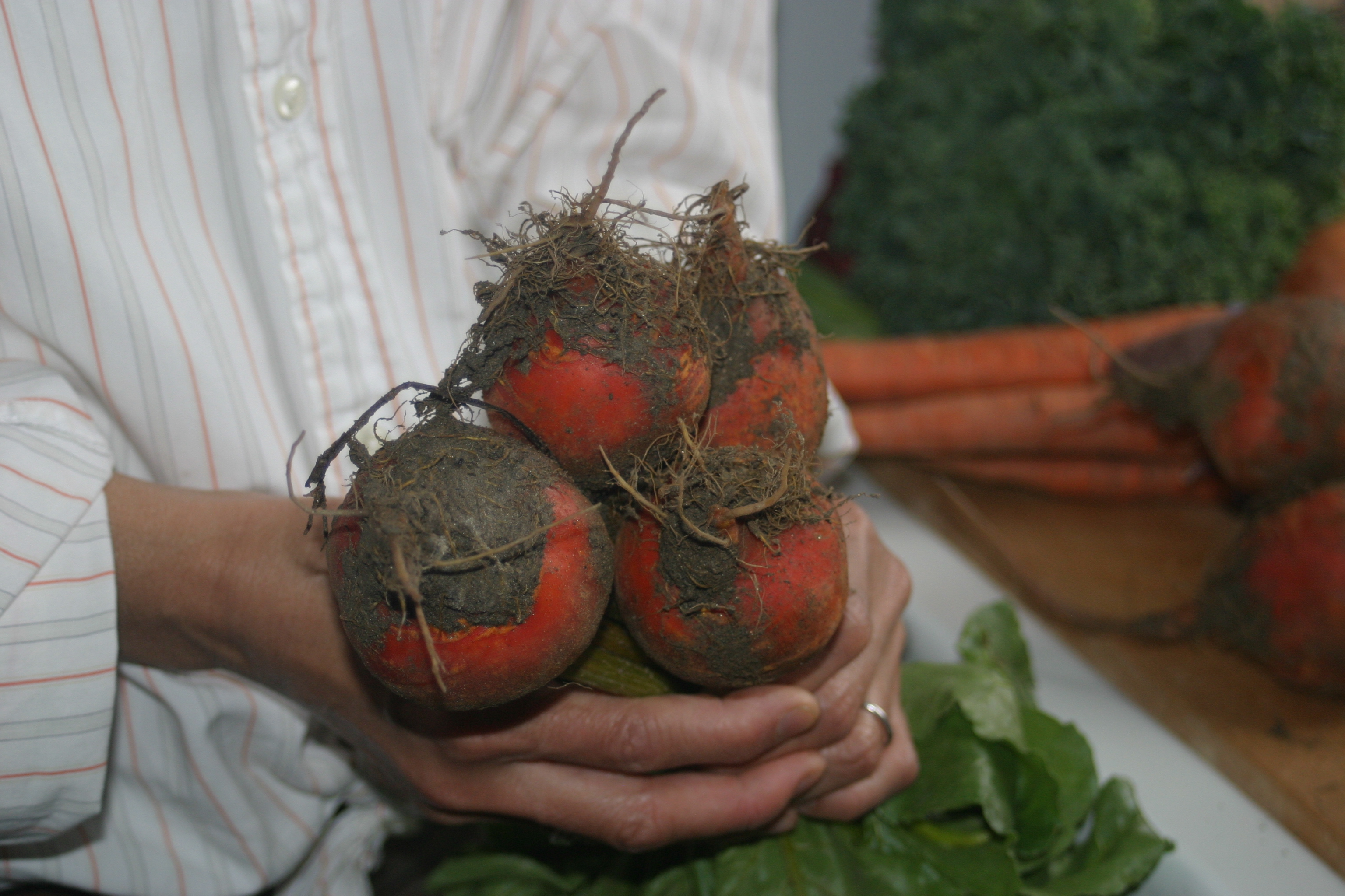 Well, the Mister is home and I’ve got a Bloody Mary to drink. I’ll leave you with a photo of some gloriously dirty golden beets that I purchased at Alameda Natural Grocery (ANG) yesterday. I’ll be back in just a few days with some pretty darn cool news about my new part-time job at ANG’s Pantry shop, as well as some more pictures, a few links, and perhaps a recipe or two (I’m gonna make some beet pickles with these beets, and if all goes well they’ll taste as good as the wonderful ones I get at Julie’s. Wish me luck!!) – Fondly, your little munakins.